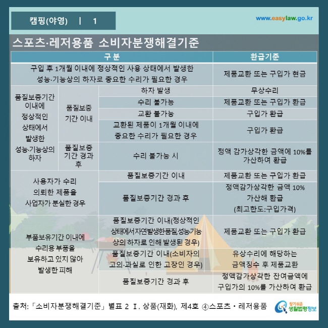 캠핑용품에 하자가 생겼을 경우 어떻게 해야 하나요?