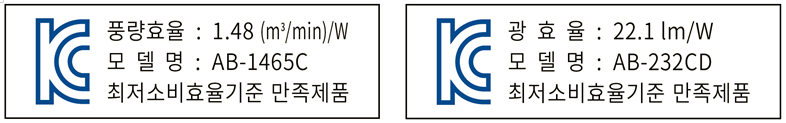 ☞ 다만, 전체 대상제품 중 선풍기, 백열전구, 형광램프, 안정기내장형램프, 어댑터·충전기, 변압기, 전기온풍기, 전기스토브, 전기레인지, 셋톱박스에는 다음과 같은 별도의 에너지소비라벨이 붙어있습니다.